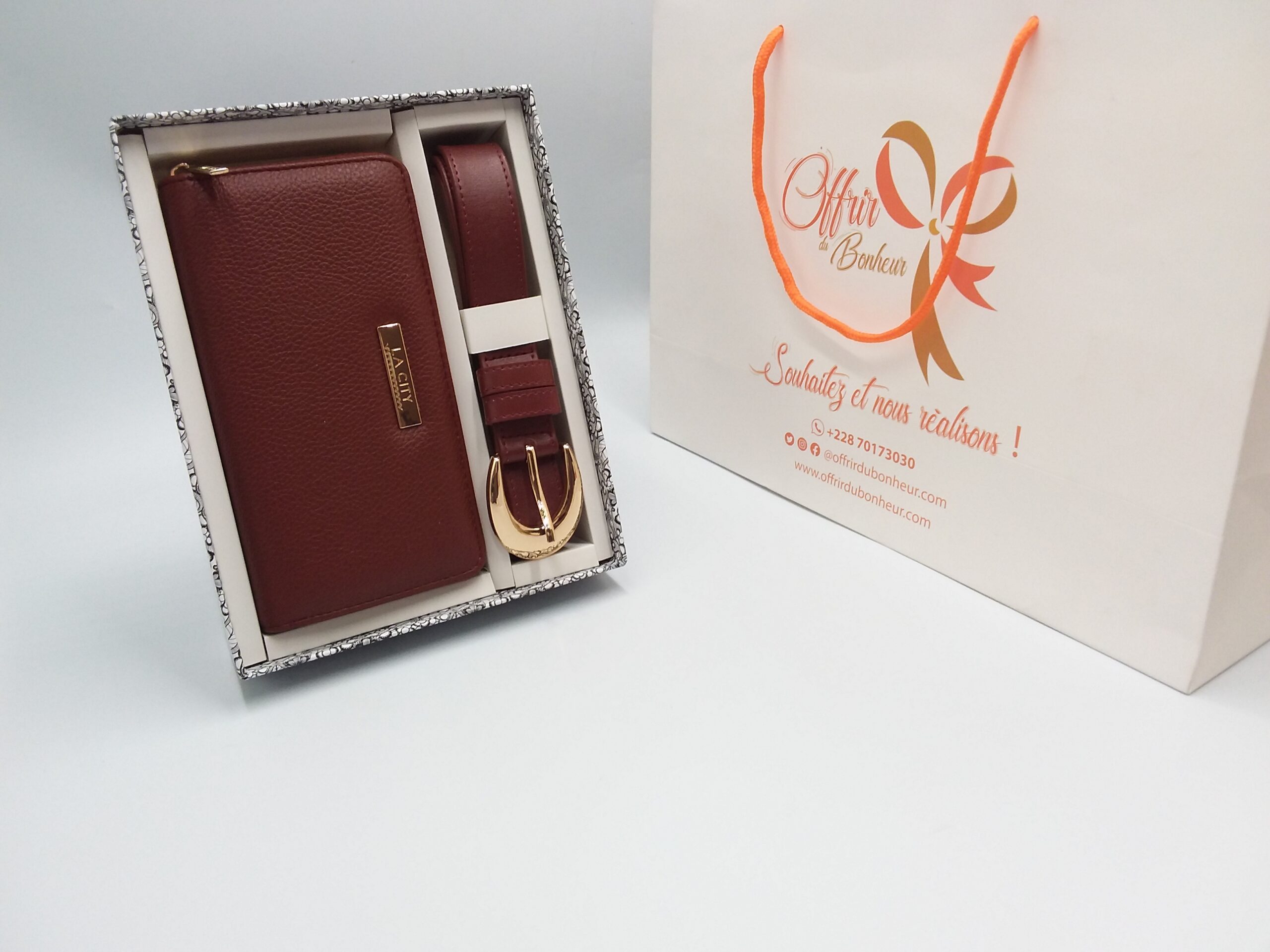 Coffret ceinture en cuir et porte monnaie