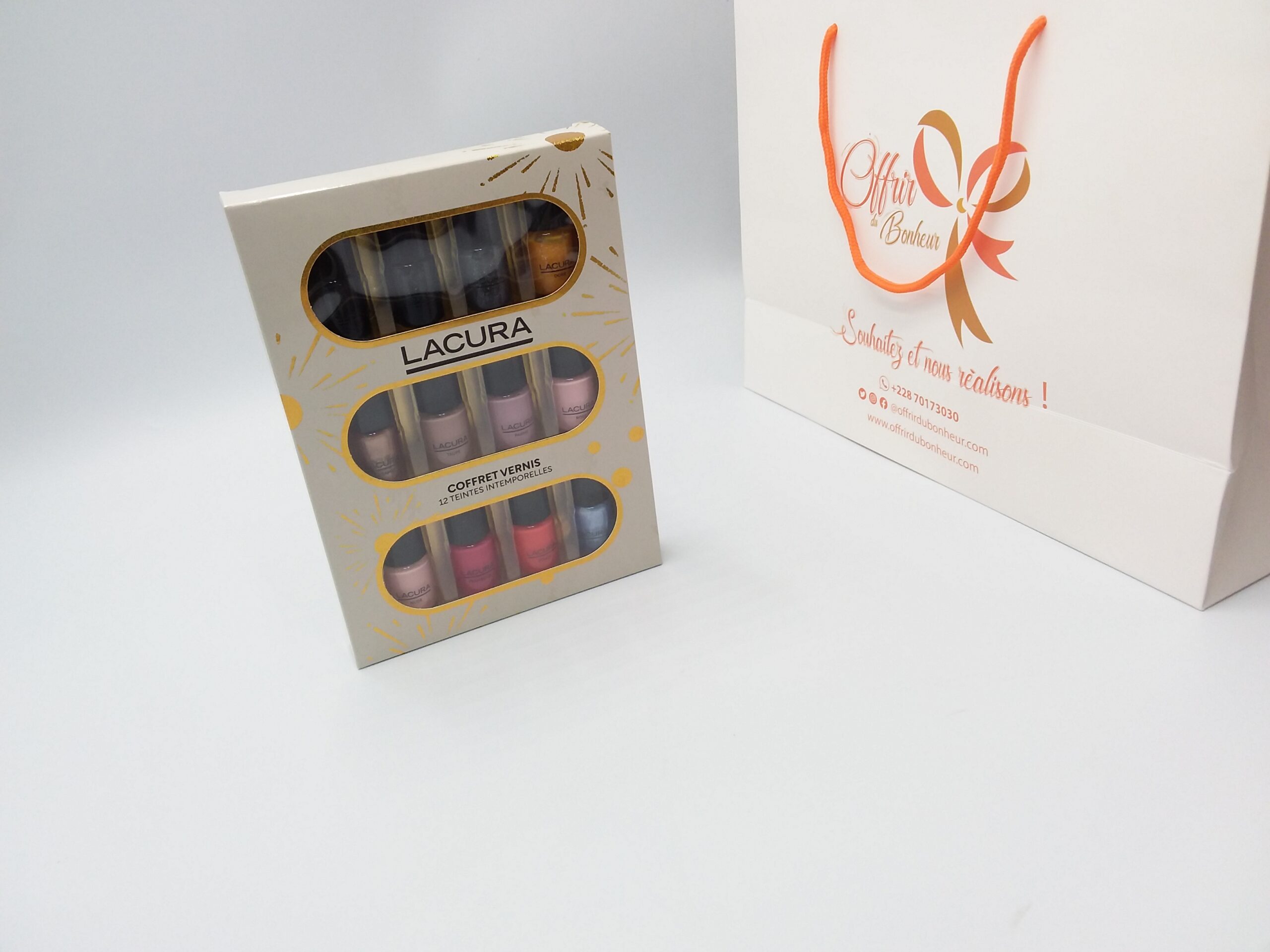 - Coffret de 12 vernis à ongles (7 ml chacun) – Une sélection complète pour varier les styles et les envies.