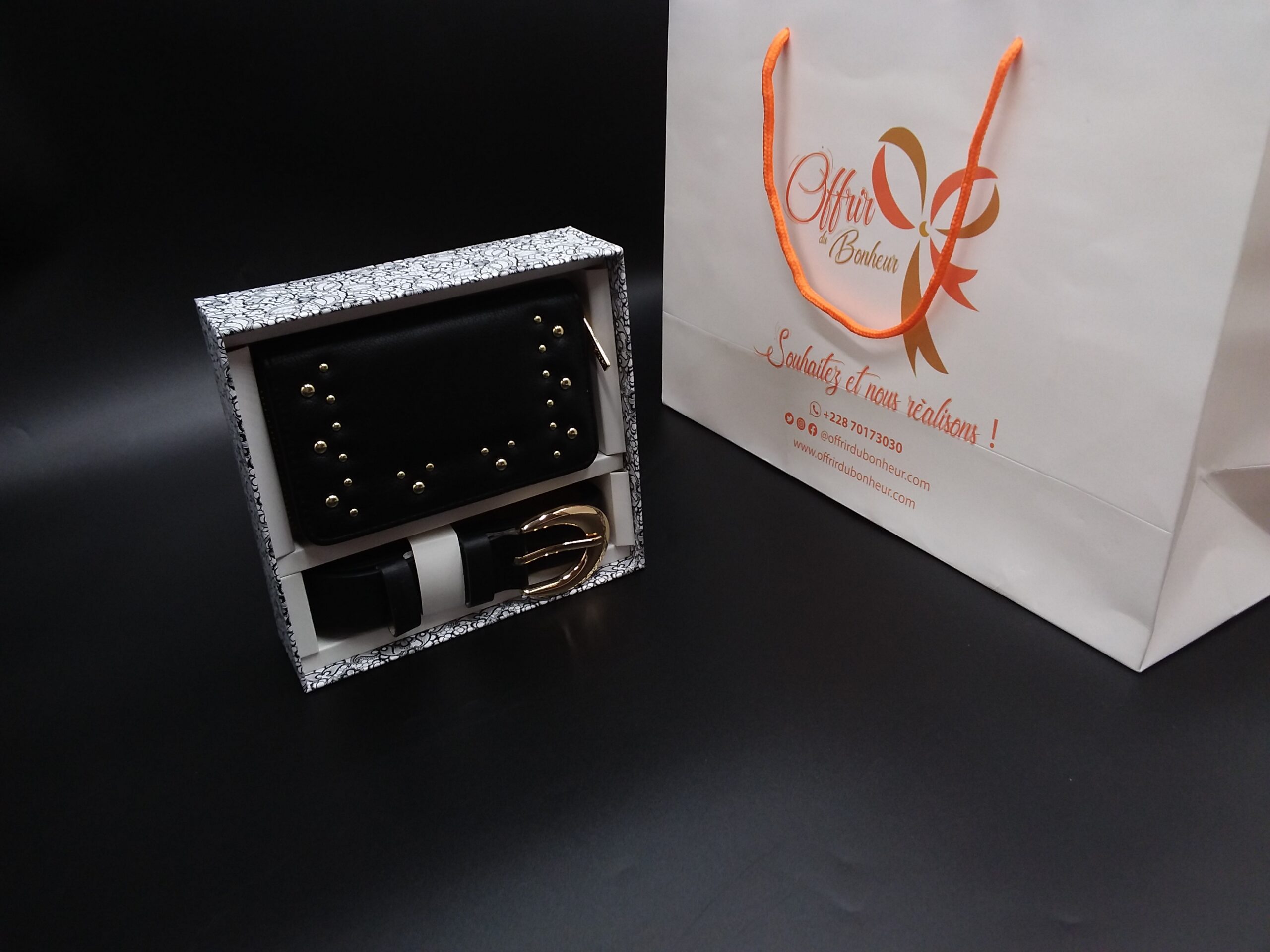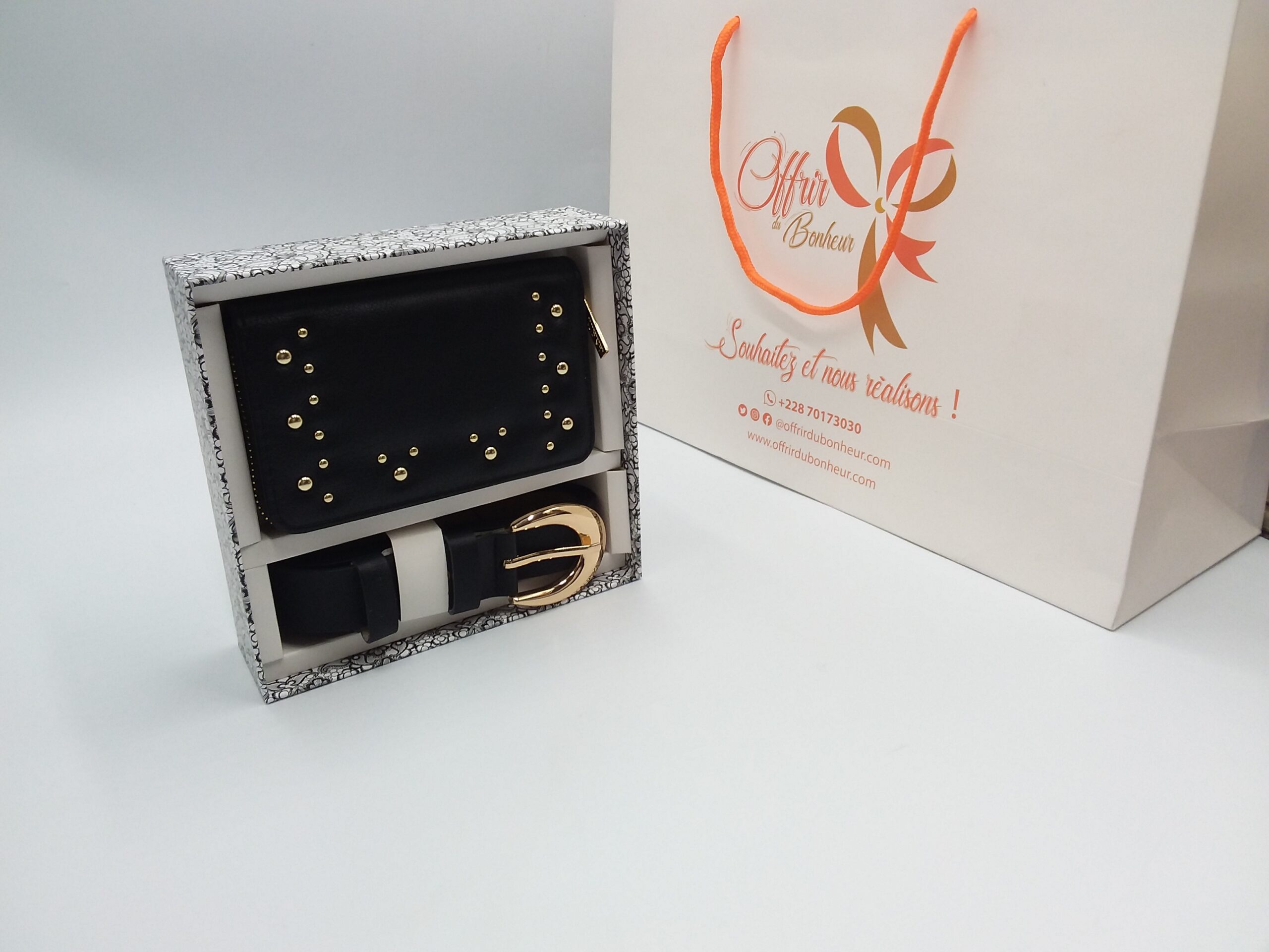 Coffret ceinture et portefeuille noir pour femme
